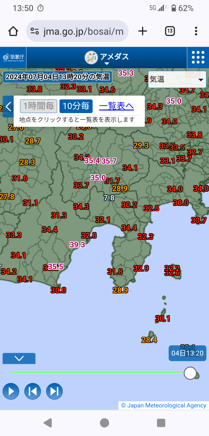 今年全国初 静岡市で39℃台を観測