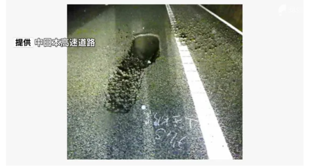NEXCO中日本によりますと、付近は当時18ミリの雨が降っており、雨の影響でアスファルトの結合力が弱まって路面の一部がはがれ、そこを車が走行したことで、穴ができたということです。