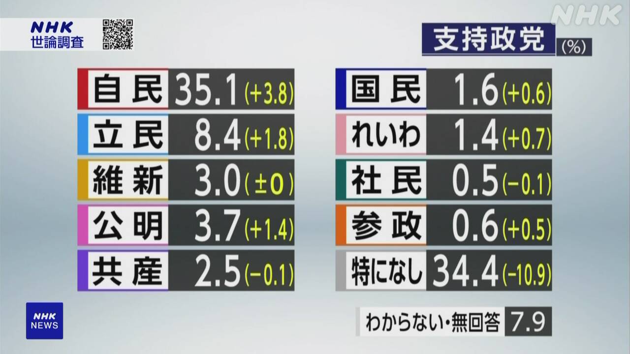 各党の支持率「支持政党なし」34.4% NHK世論調査 | NHK